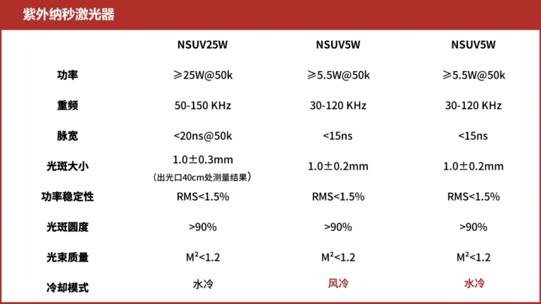 △ Huachuang Hongdu UV Nanosecond Laser-General Technical Parameters(Can be Customized on Demand)
