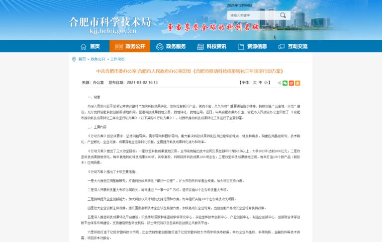 △Hiefei City’s Three-Year Comprehensive Action Plan to Promote the Translation of Science and Technology