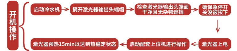 The solid laser auxiliary system (cooling, venting, etc.) needs to be started before the mainframe to ensure heat dissipation and safety.