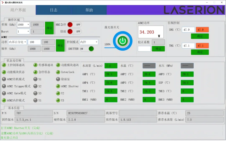 - Turn off laser output:Click the “laser switch” button in the upper computer software interface,wait for the laser to completely turn off(the button turns gray),keep the water cooler and other auxiliary systems running for 5-10 minutes,and then cut off the main power.