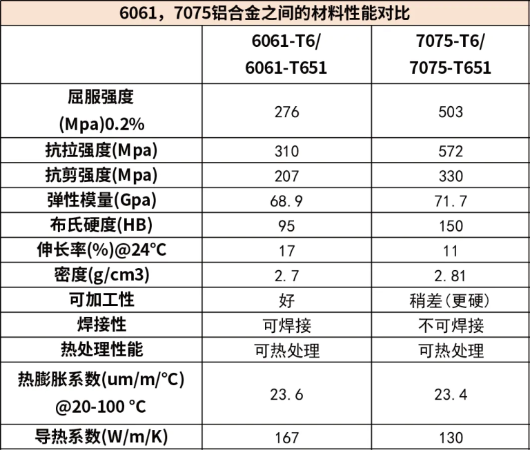 △ Contrasting Material Properties Between 6061 and 7075 Aluminium Alloys