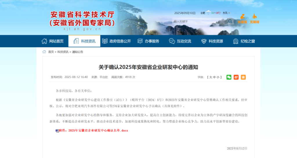 日前,安徽省科学技术厅公布了《关于确认2025年安徽省企业研发中心的通知》,安徽华创鸿度光电科技有限公司(以下简称“华创鸿度”)凭借系统化的研发体系、先进的硬件设施与持续的技术创新能力,经申报、推荐、审核、现场核查和会议审议等程序,成功获“安徽省企业研发中心”认定。