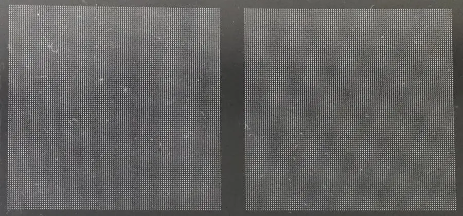 △ 激光诱导-玻璃正面(左)、玻璃背面(右)(华创鸿度实测显微照片)