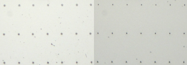 △ 激光诱导-玻璃正面(左)、玻璃背面(右)(华创鸿度实测显微照片)