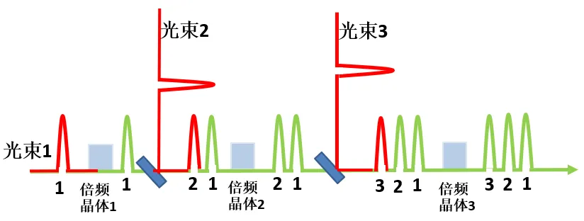 利用这一特性,多束基频激光可逐级共轴叠加,实现功率合成且保持光束质量不变。相较于传统波长耦合方法,该波长转换技术展现出显著优势:不仅无需配备不同波长的激光器,还大幅降低了对反射镜等光学元件的精度要求,有效简化了系统结构。此外,实验中通过精确调整脉冲时序以避免干涉的设计思路,也为同类研究提供了重要参考价值。