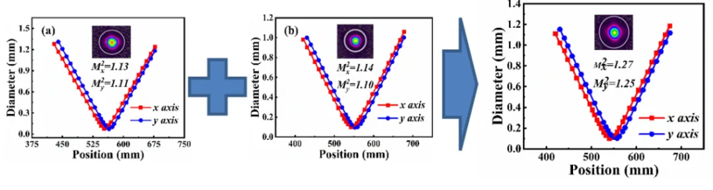 这一结果充分验证了谐波共轴合束方法在操作简易性、效率及扩展性上的显著优势。合束后的激光光束质量保持优异,为工业应用提供了可靠保障。