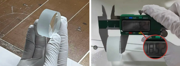 本次实测完成18.5mm超厚玻璃的一刀切割,无需多次穿透,最大可支持厚度达20mm。