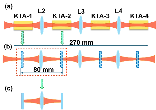 针对上述行业痛点,理化所研究组创造性地提出了 “周期阵列模式自再现” 的全新思路。该方案的核心在于:摒弃传统的复杂长谐振腔,采用一个由多块非线性晶体精密排布构成的紧凑周期阵列。